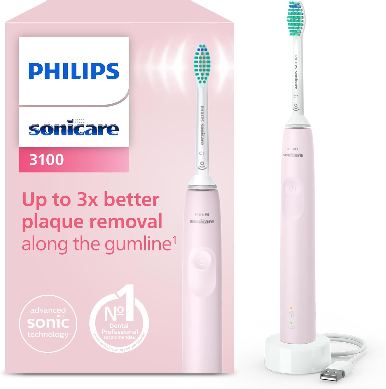Philips Sonicare 3100 Pink Electric Toothbrush – Pressure Sensor, Safe & Gentle