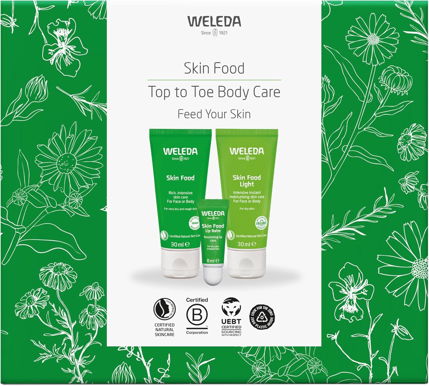 Nourish and protect skin from head to toe with the Weleda Skin Food Top-to-Toe Body Care Set, a complete collection of Weleda’s iconic Skin Food essentials for face, body, and lips.